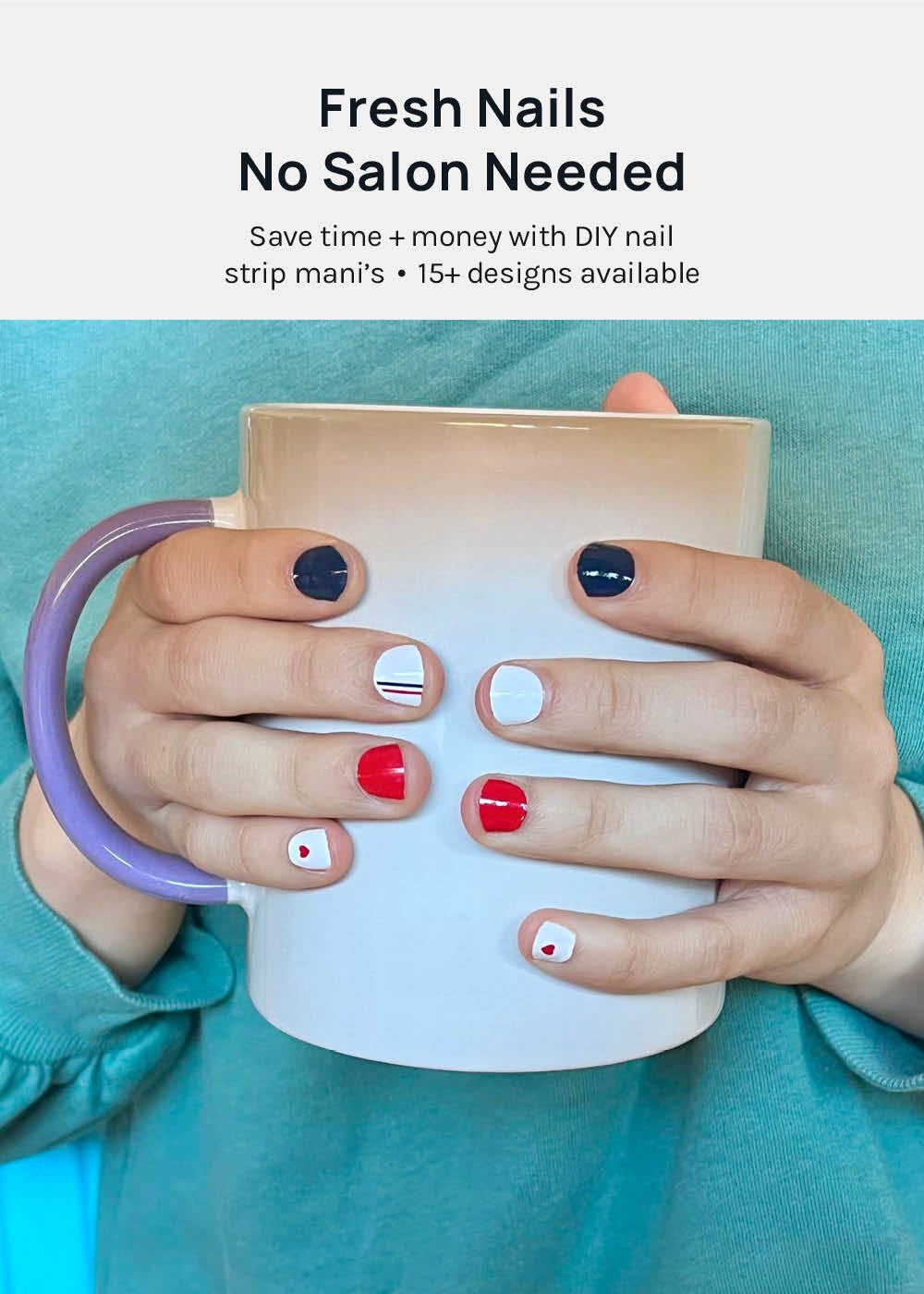 Bye-bye drying time! Create a perfect mani in minutes – just peel, stick, press + file!