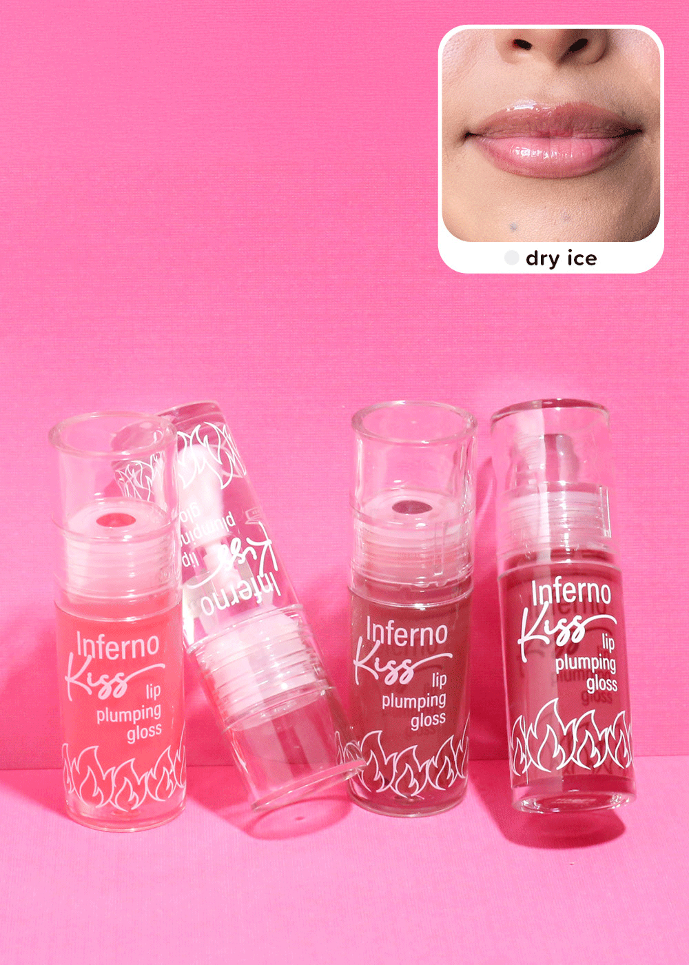 Turn up the heat with Inferno Kiss Lip Plumping Gloss: your new go-to spicy lip gloss that brings the sizzle + the shine. This bold, tinted lip gloss delivers a fiery tingling sensation that instantly makes lips look fuller, juicier, and oh-so-kissable. Packed with vitamin E, it doesn’t just bring the heat, it hydrates + conditions for a smooth, soft pout that feels as good as it looks.