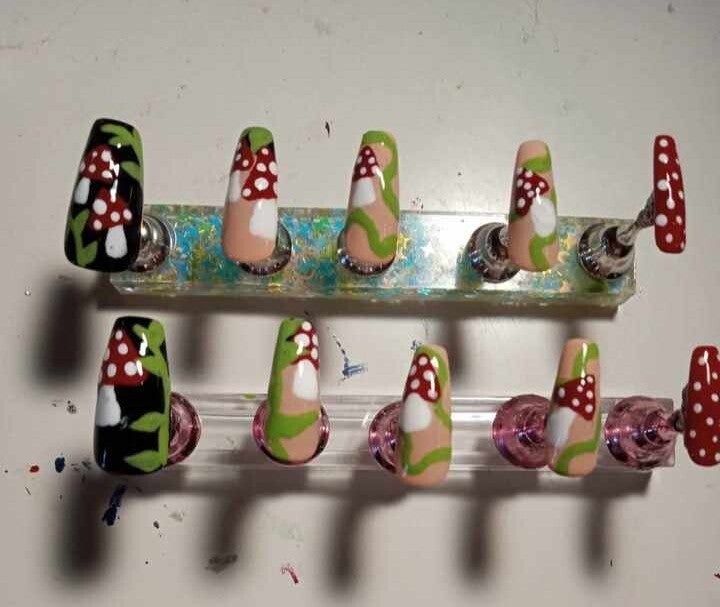 Cuticle pusher, glue/glue tabs, alcohol pad, and a nail file.