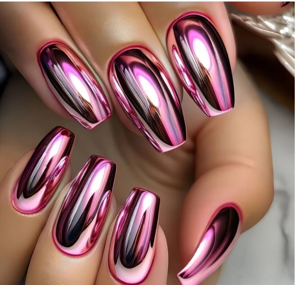 24pcs/Set Pink-Purple Electroplating Press-On Nails