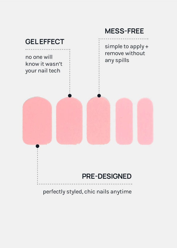 Get an easy mess-free manicure. Just peel, stick, press + file. No glue needed!