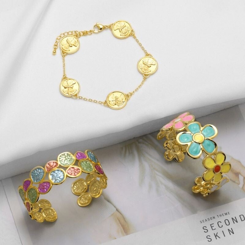 Copper Flower Bracelet Set