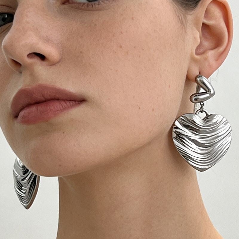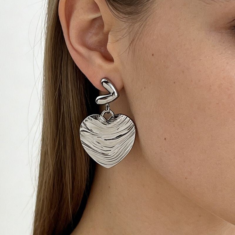 Earrings Minimalist Stainless Steel Hammered Heart Earrings